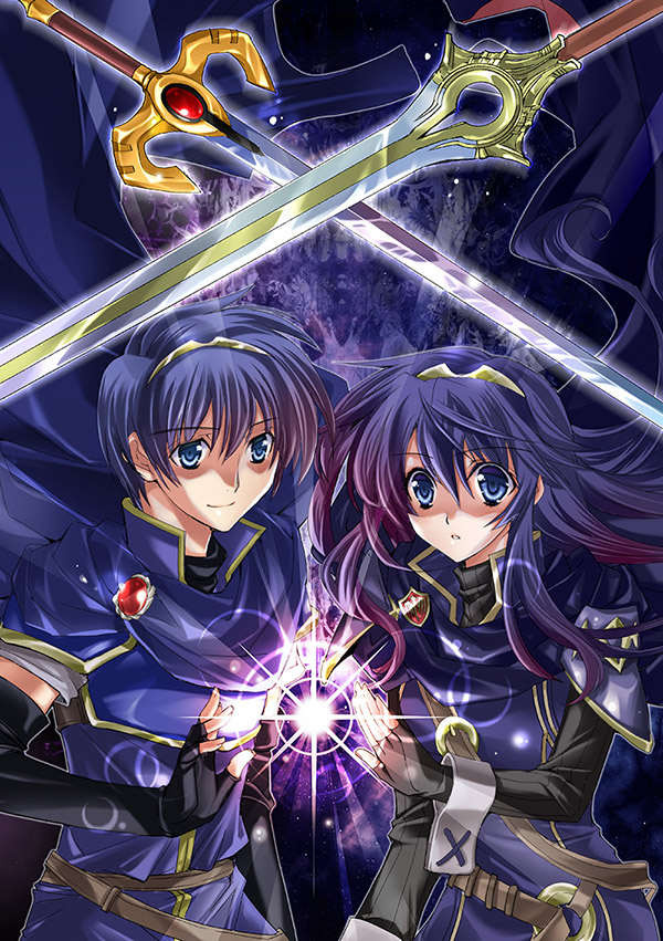 「炎の聖戦」のチラシイラスト。歴代主人公の邂逅。よく考えたらFE歴長い割りにマルスのカラーはこれが初めてです。